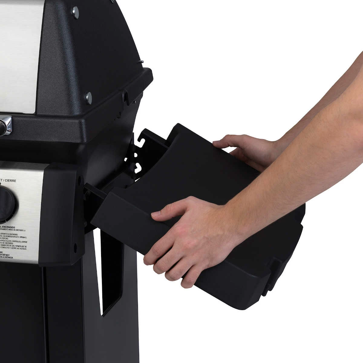 - Zubehör: Deluxe Accu-temp Deckelthermometer, Kunststoff Seitenablagen (klappbar), Edelstahl Flav-R-Wave Verdampfungssystem, Zubehörhaken, 2 Räder und 2 Standfüße verchromter Deckelgriff