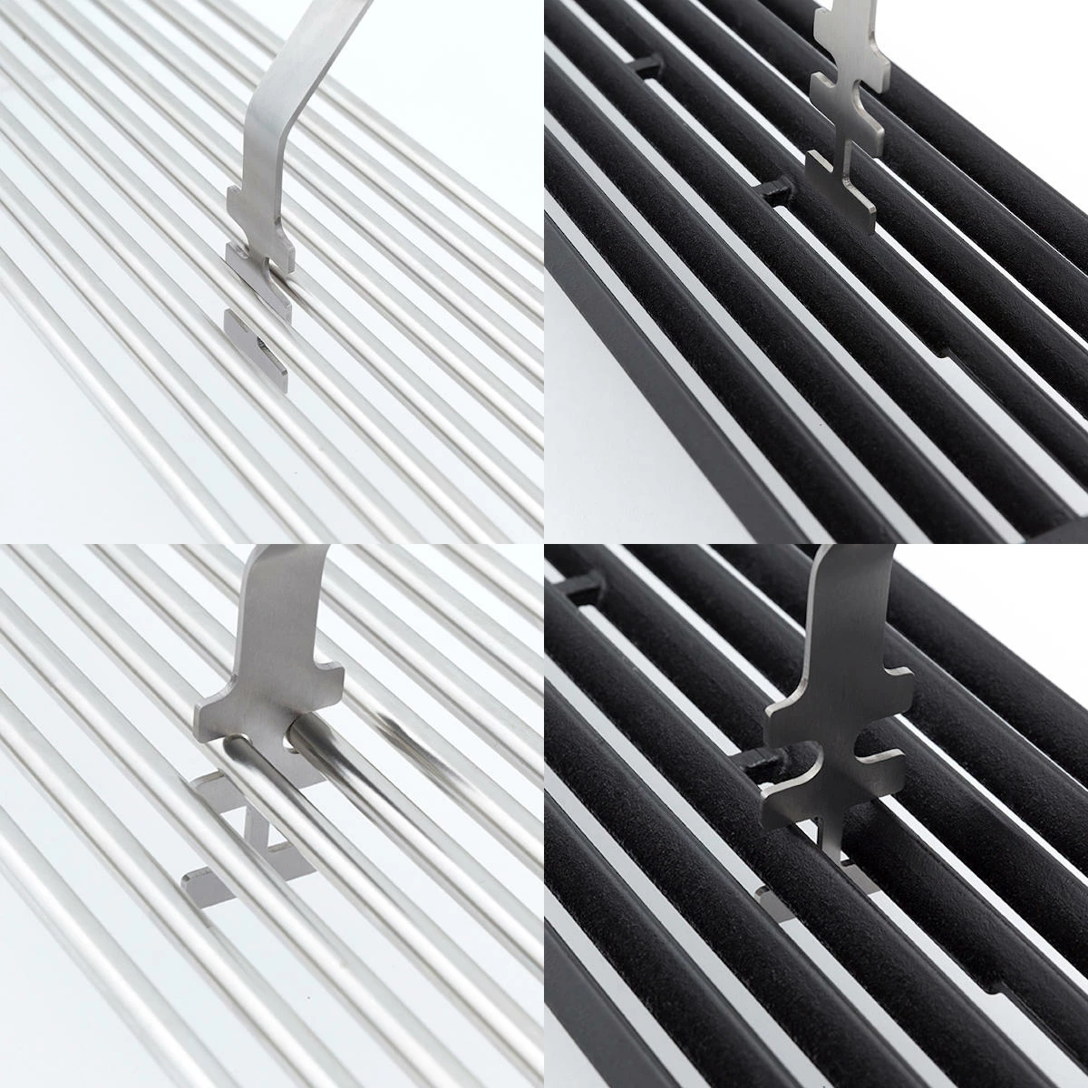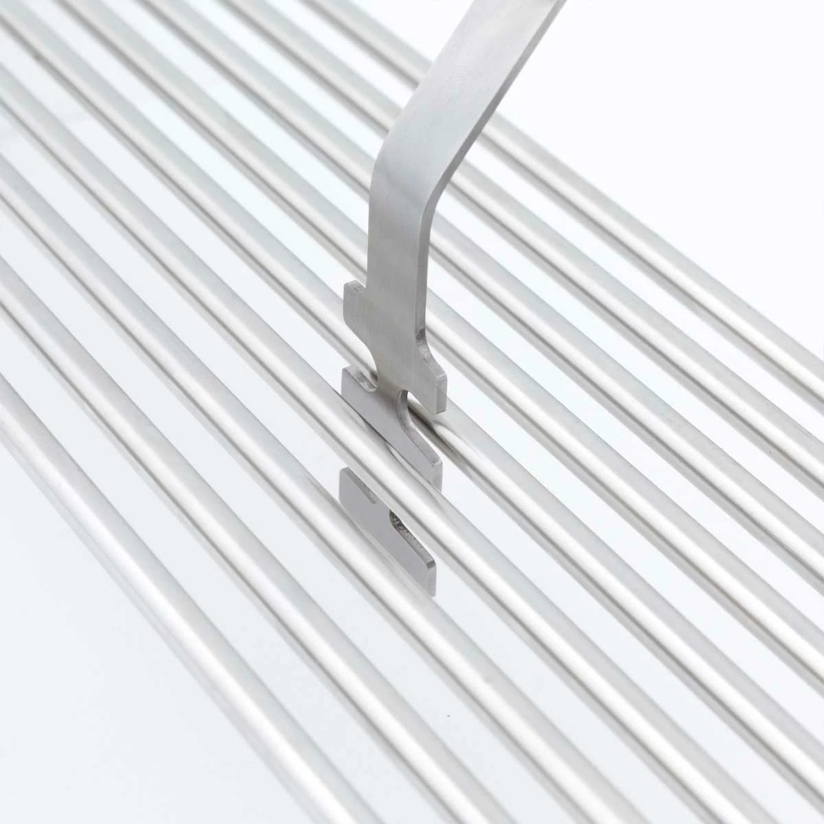 Dieses nützliche Werkzeug erleichtert Euch den Umgang mit den Broil King Narrow-Einsätzen. Gefertigt aus Edelstahl, ist der Lifter nicht nur robust sondern auch formschön. Durch den Griff liegt er hervorragend in der Hand und erlaubt eine sichere Führung auch unter Last. Konzipiert für ein einfaches Entfernen, Tauschen oder Umplazieren der Narrow-Einsätze sowie der Grillroste.