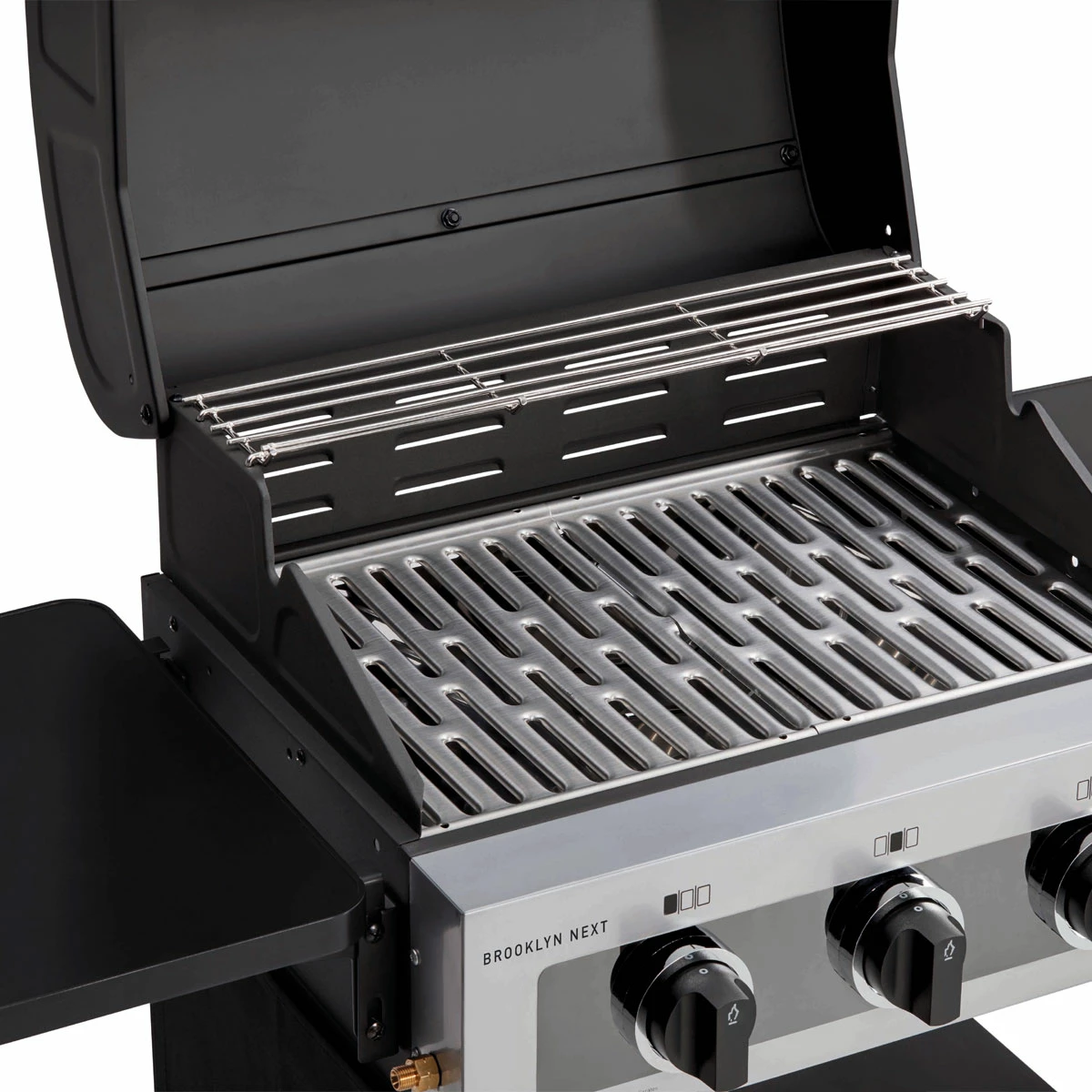 Der kompakte Brooklyn Next Gasgrill ist mit bestens gerüstet für kräftig gegrillte Spezialitäten, macht aber auch beim indirekten Grillen eine tolle Figur. Pulled Pork, Schichtfleisch, Pizza oder Rippchen – unter der aus pulverbeschichtetem Stahl ist Platz für abwechslungsreiche BBQ-Ideen und leckere Grillmenüs.