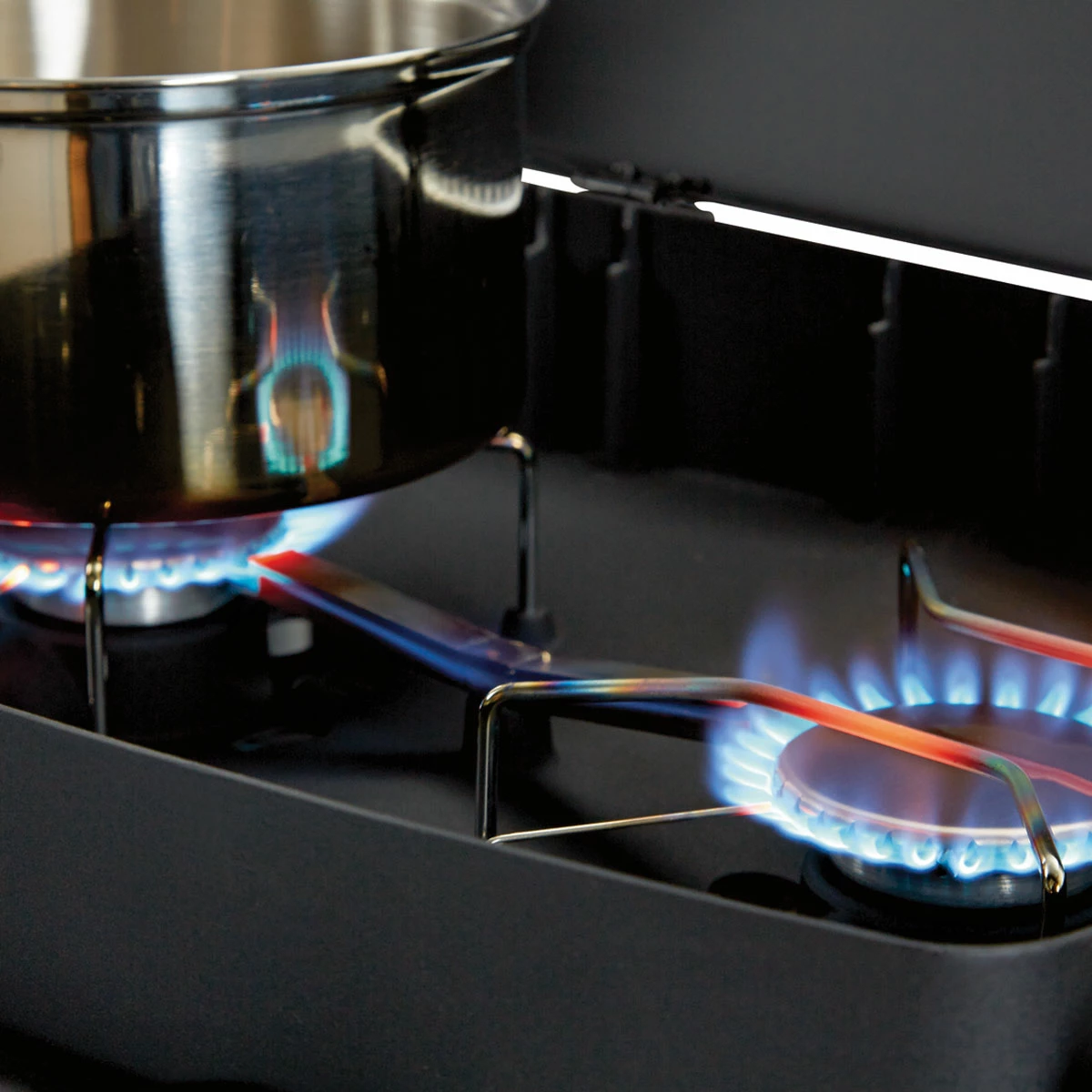 - 2 Edelstahl Rundbrenner mit einer Gesamtleistung von 4,4 kW