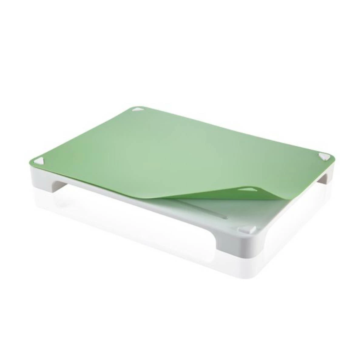 So kann zum Beispiel Gemüse auf der grünen Schneidefläche zerkleinert werden, Fisch auf der blauen. Für Fleisch gibt es eine rote Unterlage und Obst lässt sich auf der weißen prima zerkleinern. Dank der verschiedenen Farben lassen sich die Lebensmittel leicht zuordnen und die Zubereitung verläuft immer sauber sowie appetitlich.