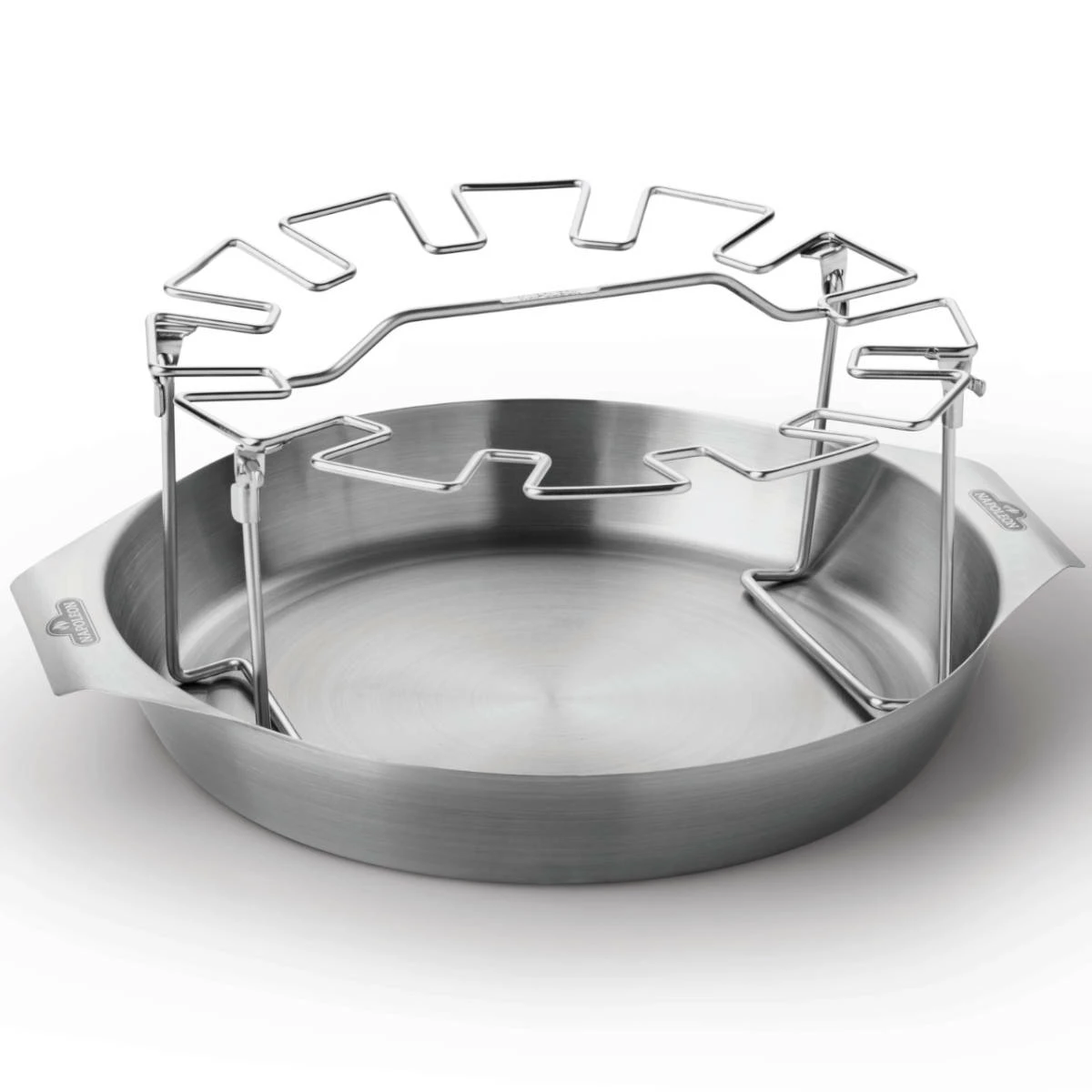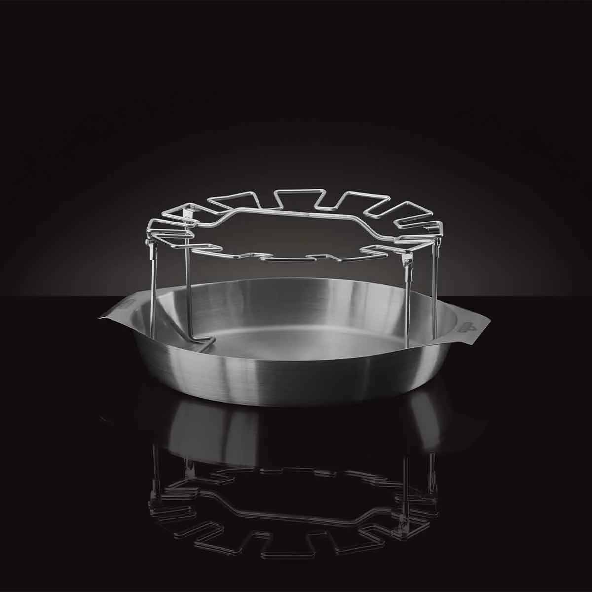 Der Napoleon Grillhalter für Hähnchenkeulen aus Edelstahl ermöglicht gleichmäßiges Garen von bis zu 12 aufrecht gestellten Geflügelkeulen. Die Grillplatte kann sowohl als Fettauffangschale als auch für die gleichzeitige bzw. separate Zubereitung von Beilagen verwendet werden. Der hochwertige Edelstahl ist beständig und spülmaschinenfest. Das Gestell ist klappbar und lässt sich leicht verstauen. Der Grillhalter kann durch seine Vielseitigkeit auch für die Zubereitung mehrerer Gerichte auf einmal – z. B. Hähnchen und Paella – eingesetzt werden.