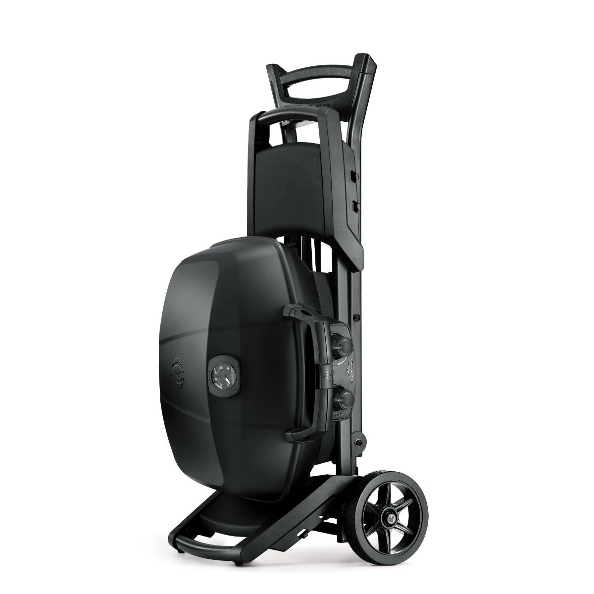 Der solide Wagen bietet Platz für Zubereitung und Zubehör durch seinen einladenden Seitenablagen samt Besteck- und Handtuchhaltern. Durch seine großen Räder wird er zum praktischen Grilltransporter und lässt sich eingeklappt mittels Wandaufhängung besonders platzsparend aufbewahren. Auch große Stücke lassen sich dank des neuen hohen Deckels aus Aluminium Druckguss problemlos zubereiten.