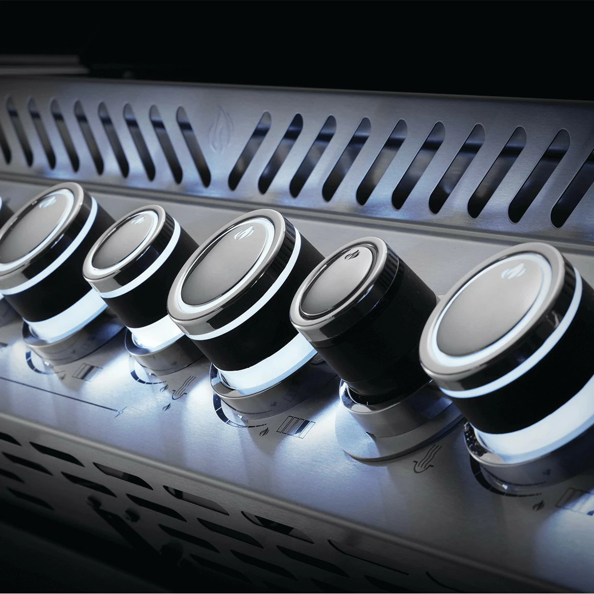 Selbst in der Dunkelheit lässt sich dieser Grill dank integrierter Hintergrundbeleuchtung präzise steuern. Die Beleuchtung ändert sich bei Gasfluss von blau zu rot.