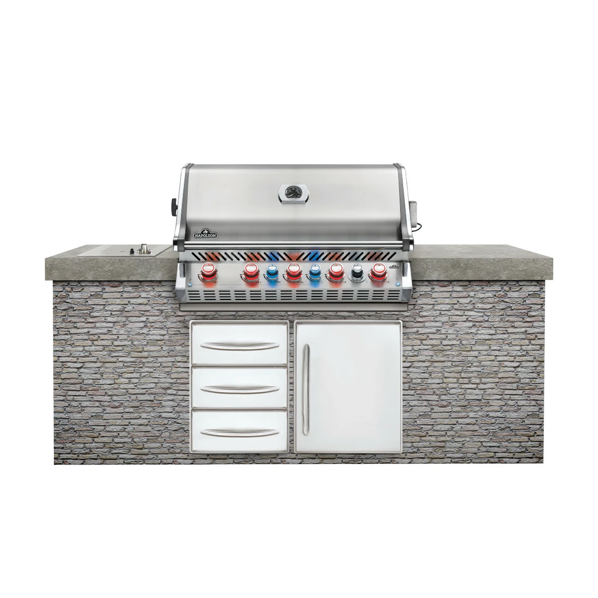 Mit seinen insgesamt 7 Brennern lässt der BIPRO665 keine Wünsche der Grillgourmets offen. Die Edelstahl-Konstruktion sorgt für die Langlebigkeit, Chrom-Akzente für die Schönheit: Der Napoleon Einbaugrillaufsatz Prestige Pro 665 als Einbauvariante mit Erdgasanschluss ist eine Klasse für sich.