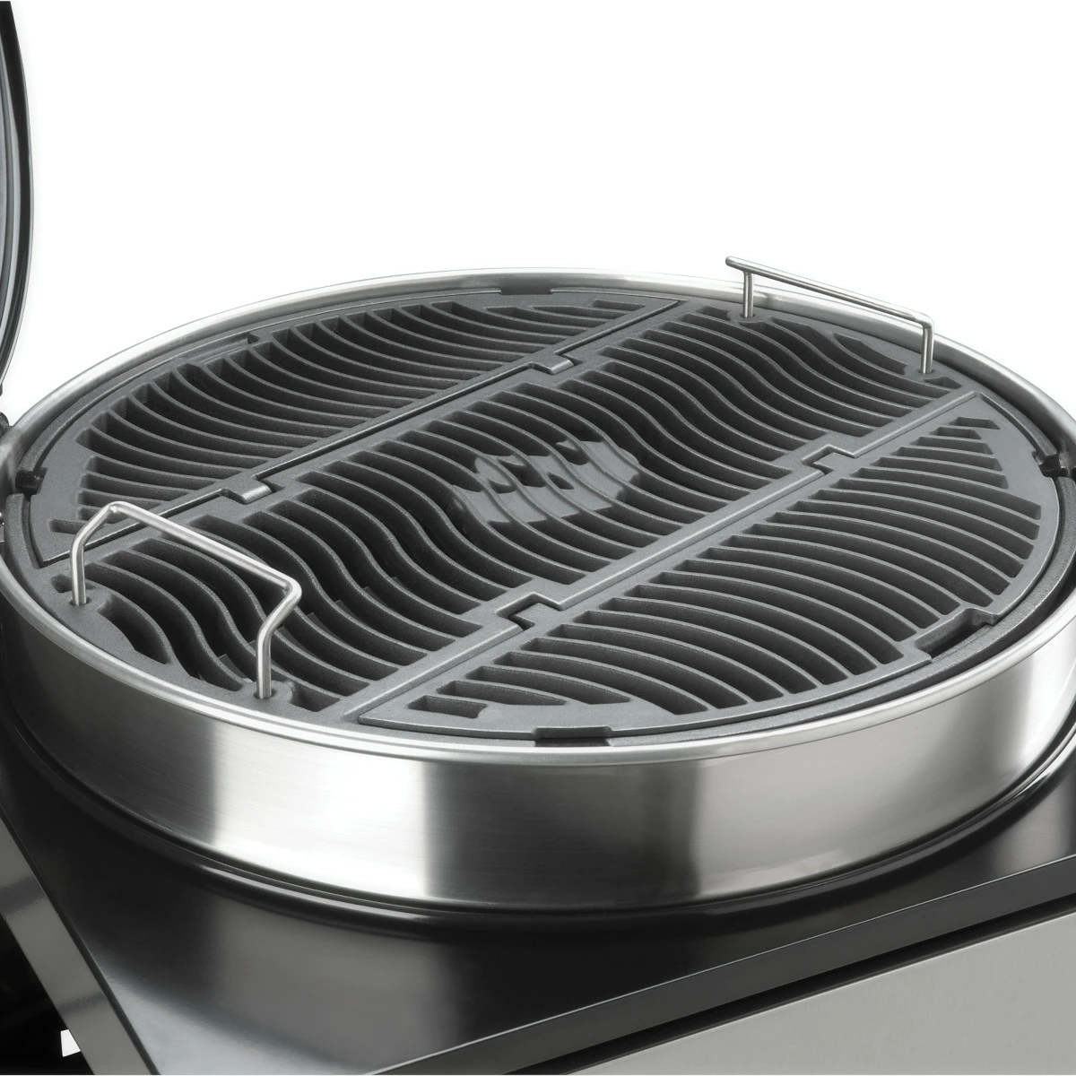 Der Grillmeister kann in jeder beliebigen Kugelposition sicher über der Grillfläche hantieren, dank der um 360° drehbaren Kugel, ausgestattet mit einem komfortablen Deckelscharnier, welches ein sicheres und bequemes Aufklappen des Deckel gewährleistet.