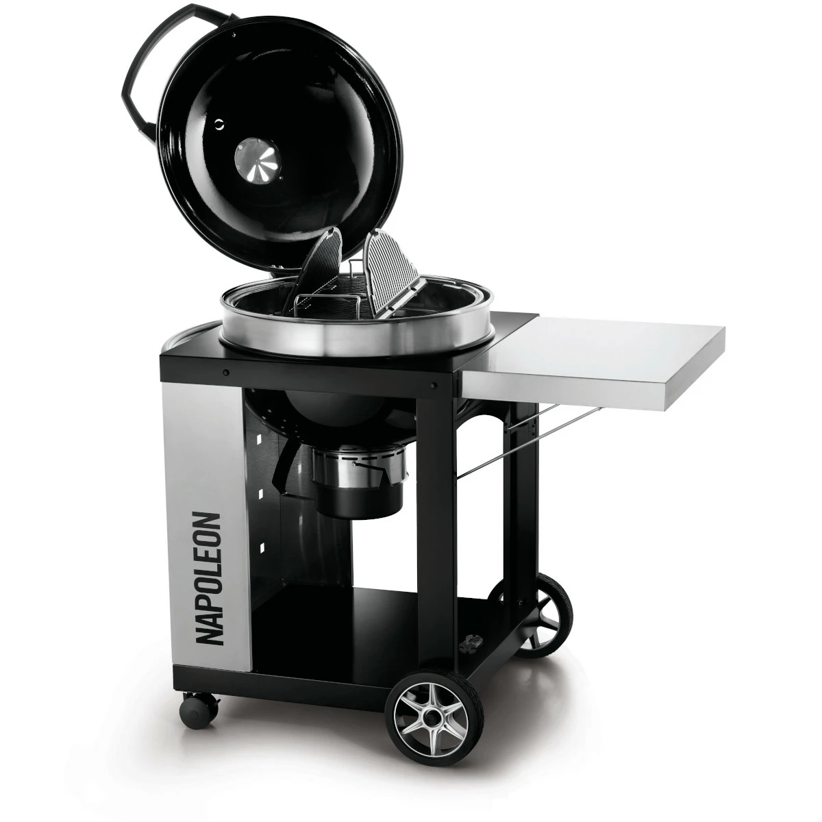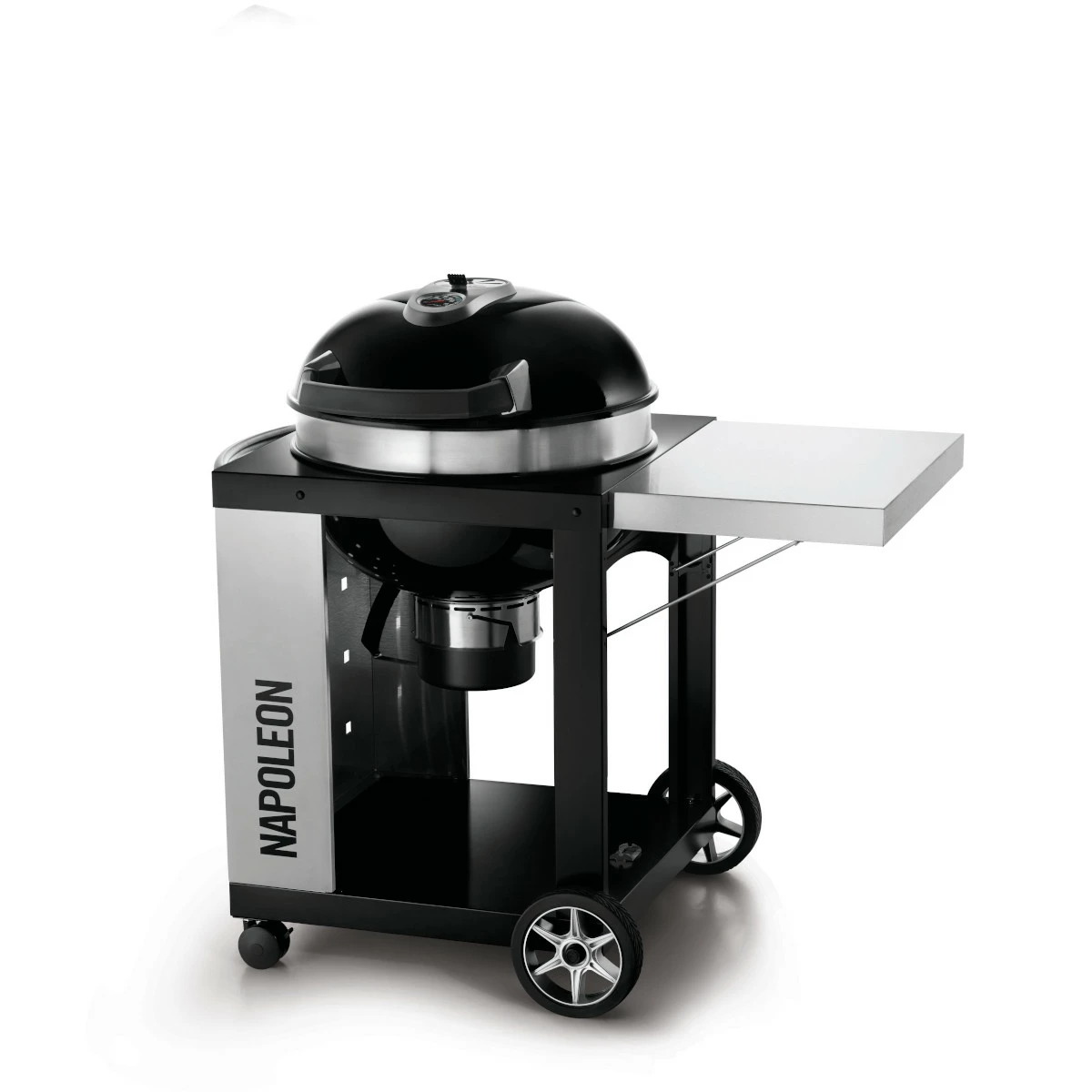 Mit seinem geradlinigen Wagen-Design und seinen praktischen Funktionen und Ausstattungsmerkmalen setzt Napoleons Holzkohlegrill PRO22K-CART alles auf die Premium-Karte: Der Grill kann sehr niedrige Temperaturen erreichen, da er mit dem optimierten Lüftungssystem ausgestattet ist, welches sich komplett dicht schließen lässt.