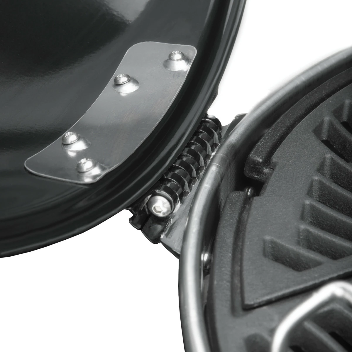 Dank des komfortablen Deckelscharnier und dem damit verbundenen bequemen und sicheren aufklappen des Deckel, kann der Grillmeister sicher über der Grillfläche hantieren. Für eine gleichmäßig verteilte und lang anhaltende Hitze sorgt das dreifach höhenverstellbare, klappbare und massive WAVE™ Gussgrillrost (Ø 57 cm).