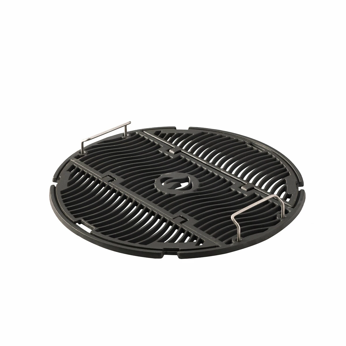 - In drei Stufen höhenverstellbare klappbare Grillroste aus Gusseisen