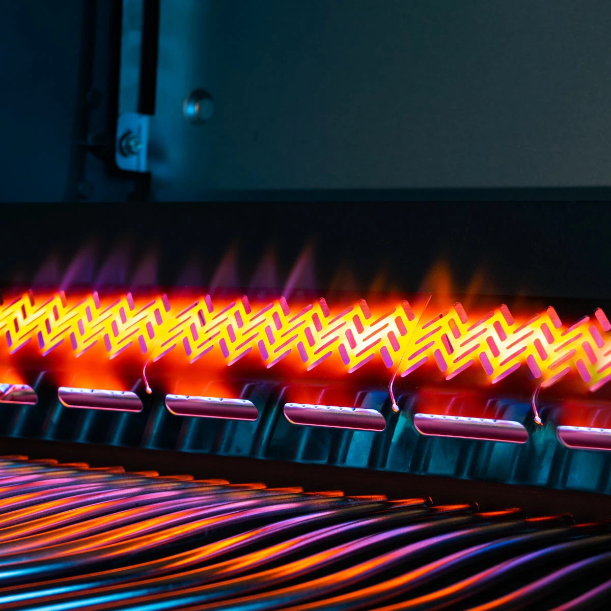Das innovative und einfach zu bedienende JETFIRE Zündsystem entzündet per Knopfdruck die Hauptbrenner mit einem Flammenstrahl.