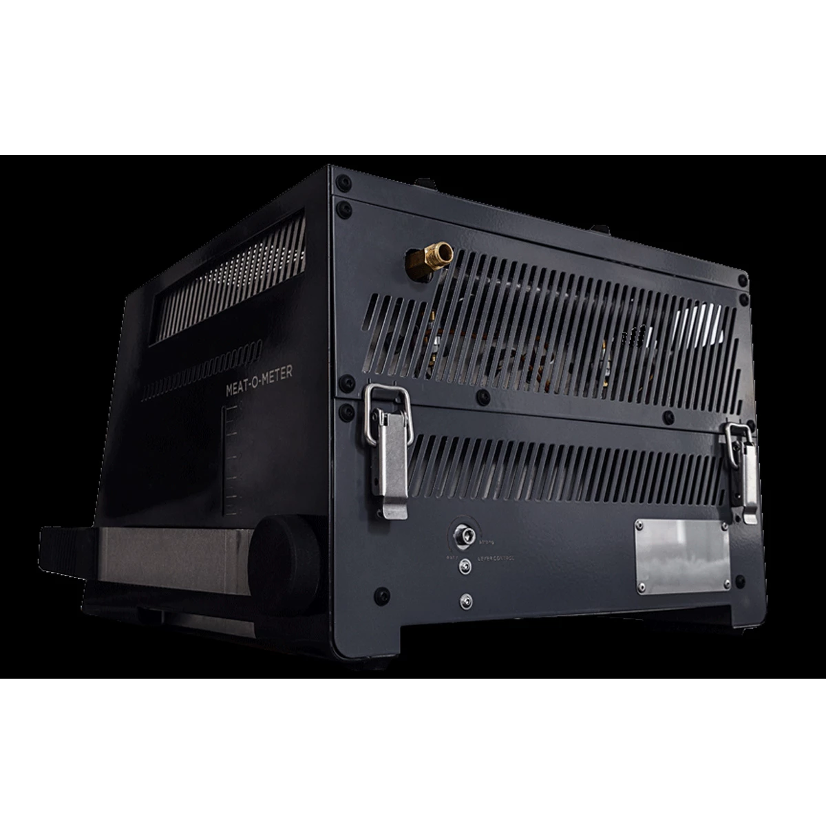 Der O.F.B. ist ein mit Propangas betriebener Grill mit der Besonderheit, dass zwei Infrarot-Brenner eine Hitze von bis zu 900°C von oben erzeugen. Ein großer Vorteil gegenüber handelsüblichen Grills, da so der Fleischsaft nicht auf die Kohlen tropft und keine gesundheitsgefährdenden Stoffe entstehen können. Diese enorme Hitze sorgt dafür, dass das Steak von außen eine leckere Kruste (Maillard Reaktion) bekommt, während es innen rosa, zart und saftig bleibt. Nach nur 3 Minuten Vorheizen 1-2 Minuten von jeder Seite grillen und kurz im Garraum nachziehen, ist das perfekte Steak schon nach kürzester Zeit fertig. Eine mitfahrende Fettfangschale zum Auffangen der Fleischsäfte, eine schnelle und gründ