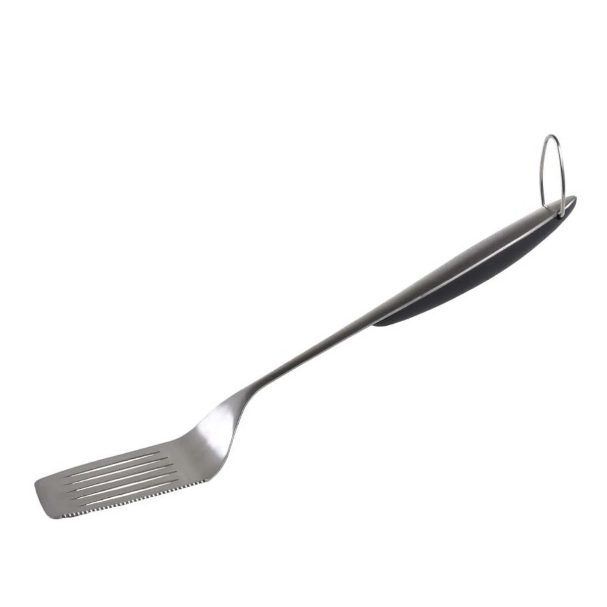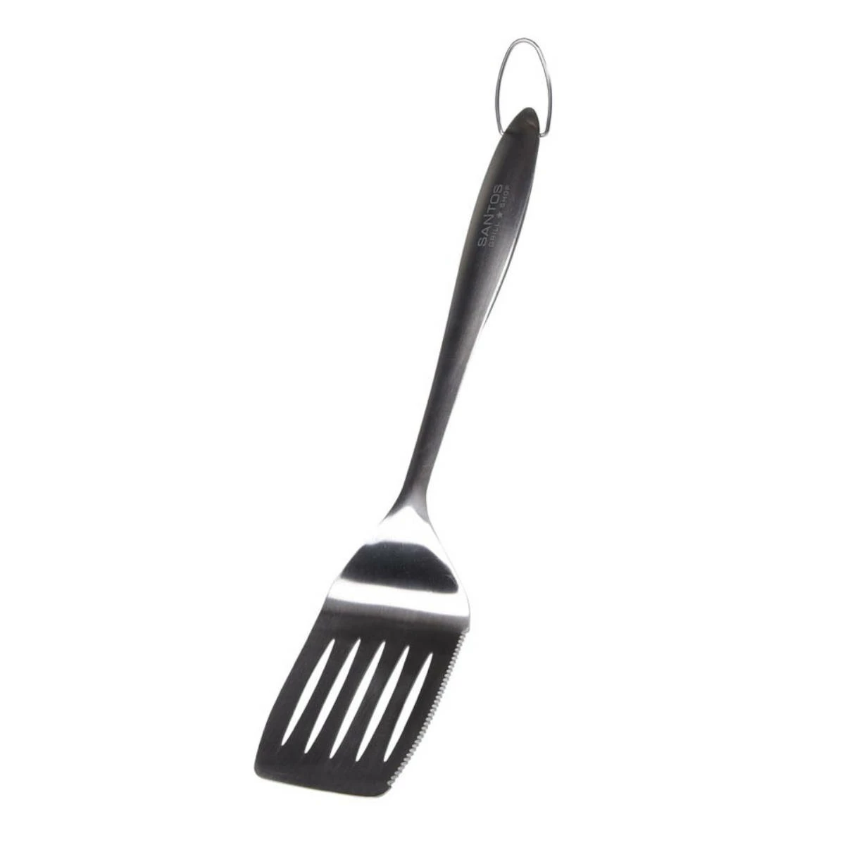 Die SANTOS Spatula, gerade Kanten, abgeflachte Spitze zum besseren heben von Grillgut aller Art mit einem festen stabilen Griff. Wir legen sehr viel Wert auf Qualität, nehmt den Spatula in die Hand und Ihr werdet begeistert sein. Die Spatula ist zum wenden von Bratgut, Hamburgern, Fleisch, Geflügel einfach alles was seinen Platz auf Erem Grill findet und selbstverständlich auch für die einfache Reinigung von Grillplatten aller Art wie z.B. Steakplatten, Teppanyaki geeignet.