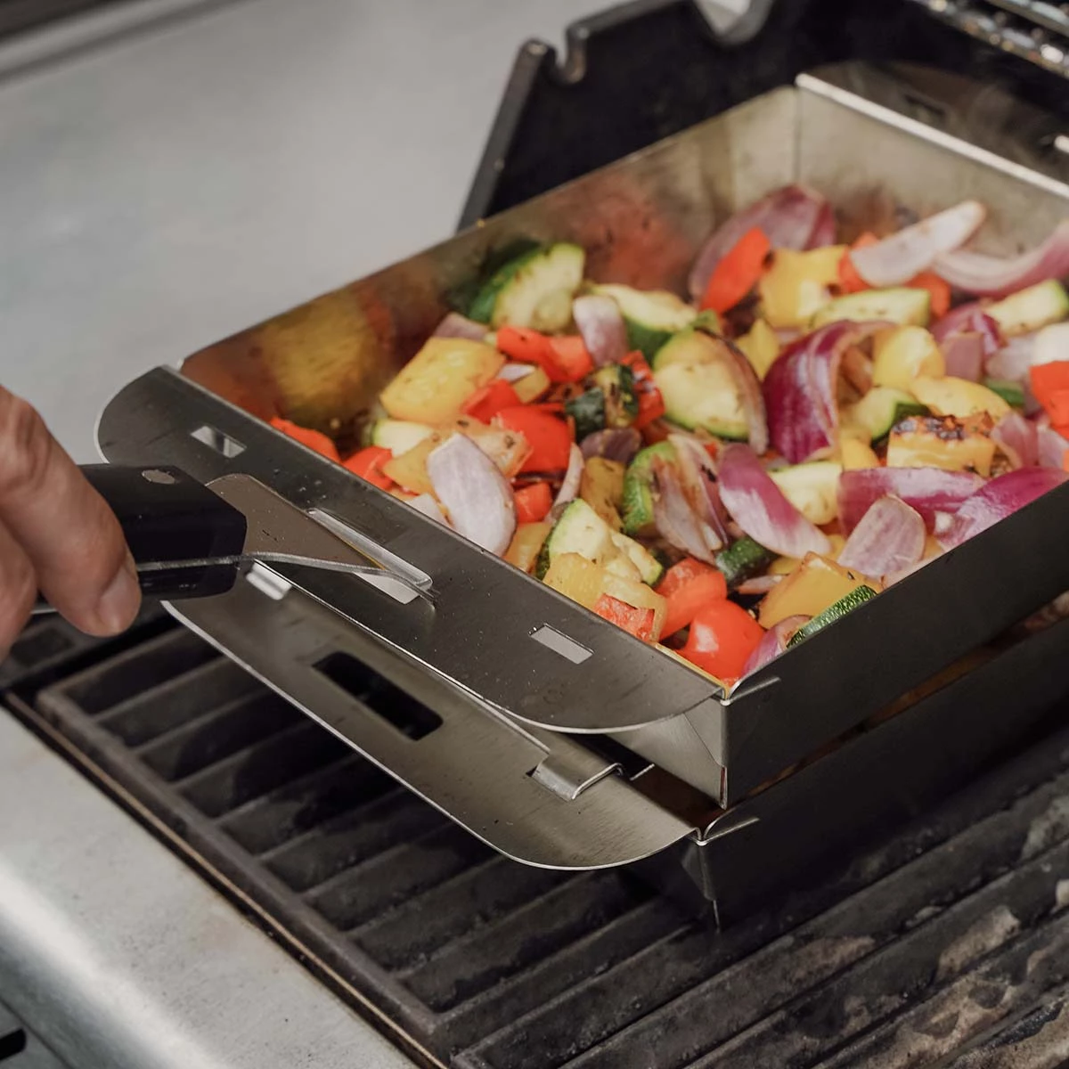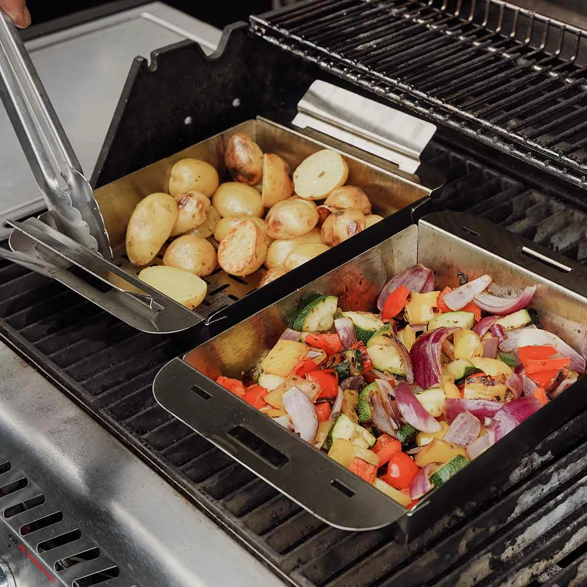 Einfach zu verstauen und praktisch in der Nutzung: Mit dem seid Ihr optimal gerüstet, um neben Fleisch auch Beilagen wie Gemüse und Pommes zu garen. Kein lästiges Hin- und Herschieben mehr, um für jedes Grillgut ausreichend Platz zu haben. Mit den stapelbaren Grillkörben könnt Ihr Fleisch auf dem Grillrost braten, während der Rest in den Körben darüber gegart wird. Mit einem Maß von ist in den Körben auch genügen Platz vorhanden, um Paprika, Zucchini, Bratkartoffeln und Co. zuzubereiten.