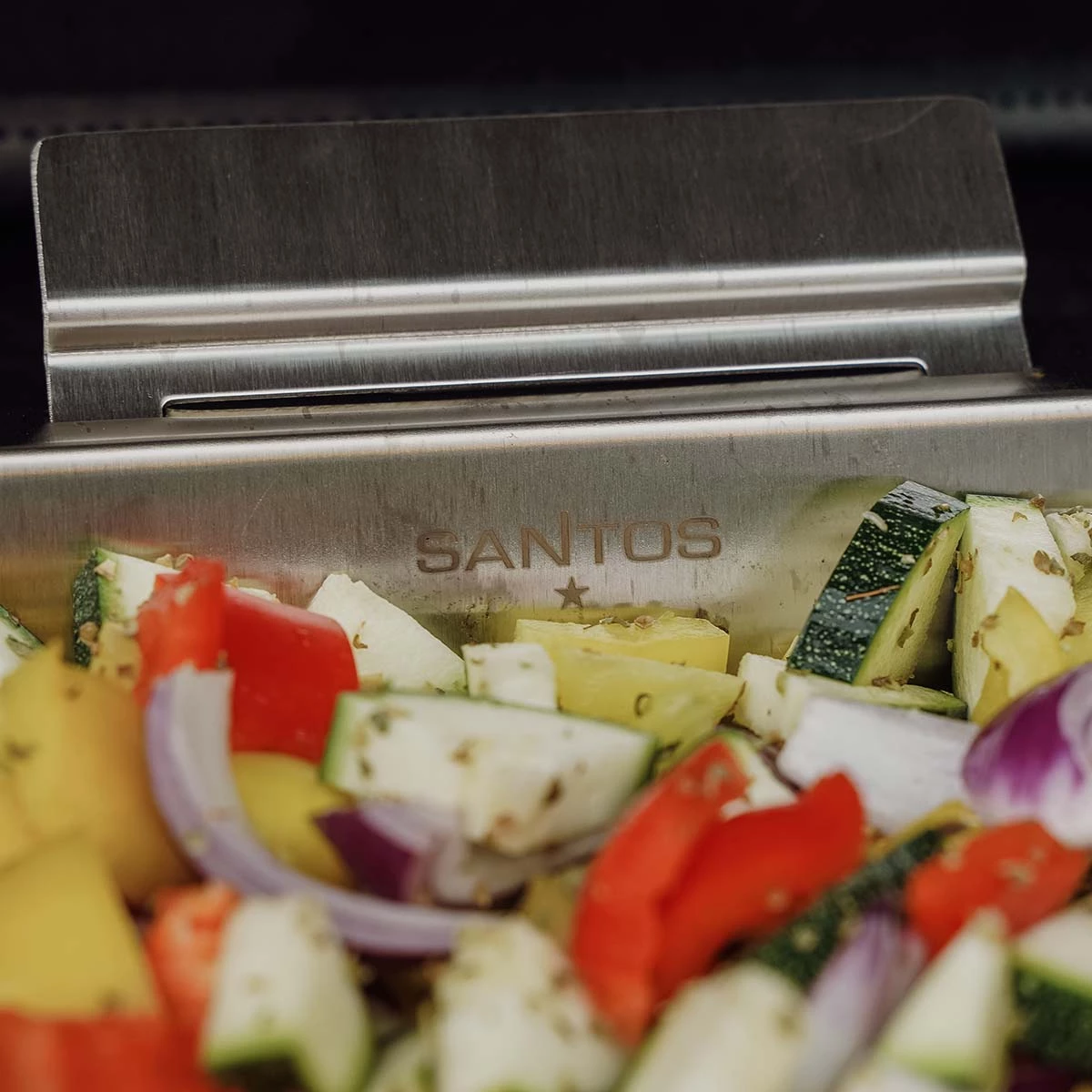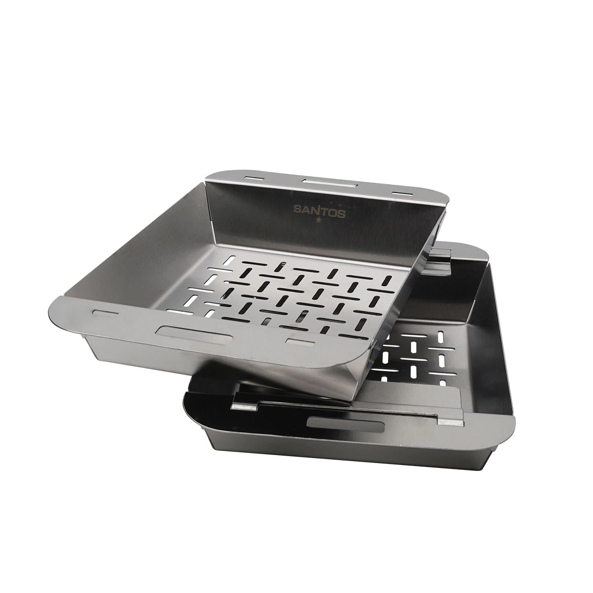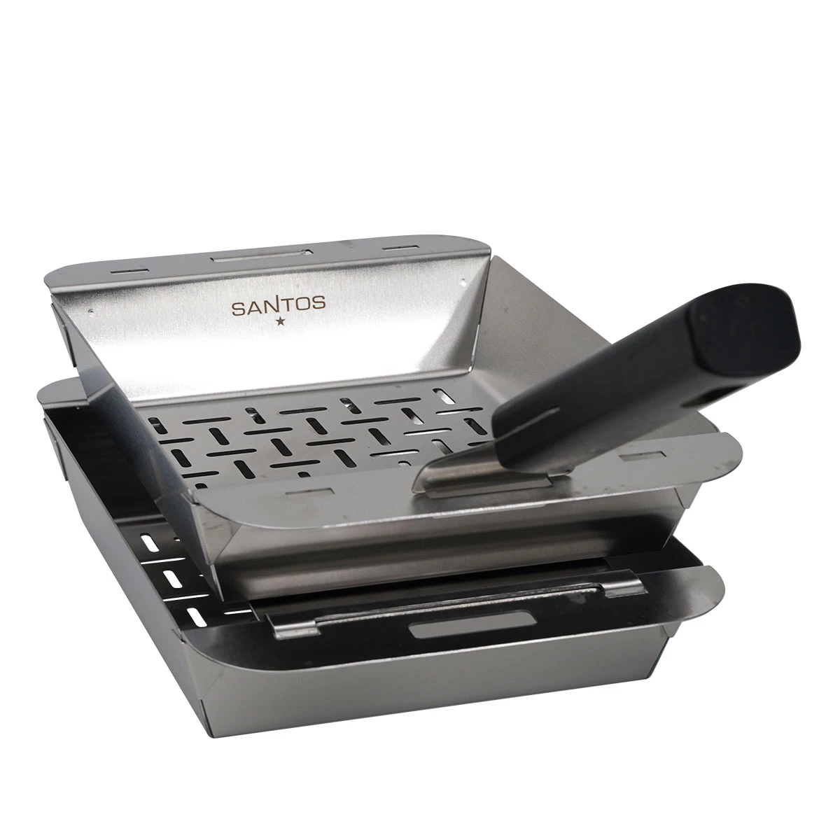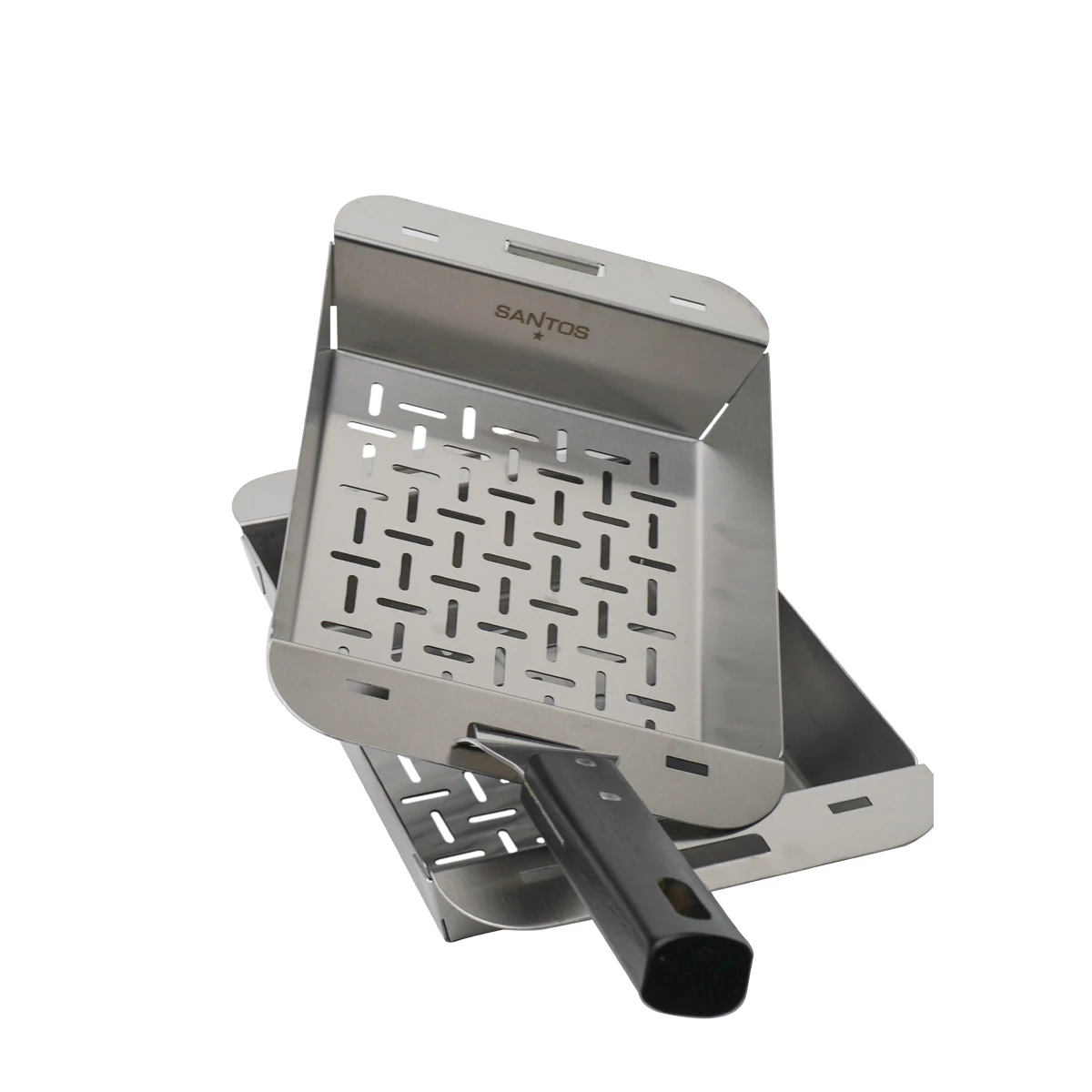 Beilagen wie Gemüse und Pommes können viel Platz auf dem Grillrost einnehmen. Um den vorhandenen Platz besser zu nutzen, haben wir uns etwas einfallen lassen: Mit den könnt Ihr Euer gesamtes Grillgut . Das kommt . Die Haken können and den Griffen eingesetzt werden und die SANTOS Grillkörbe so einfach und sicher aufeinandergestapelt werden.