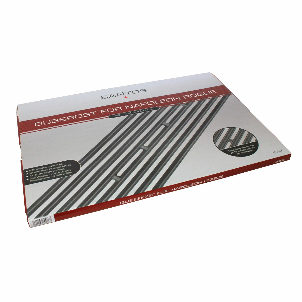 Das perfekte Branding braucht einen guten Grillrost. Der gusseiserne Rost von SANTOS ist sehr massiv mit einer hohen Materialstärke, so dass die Hitze besonders gut gespeichert und an das Grillgut wieder abgegeben wird. Das Ergebnis ist eine perfekte Grillmarkierung, die nicht nur gut aussieht, sondern auch Röstaromen und intensiven Geschmack an das Essen bringt.