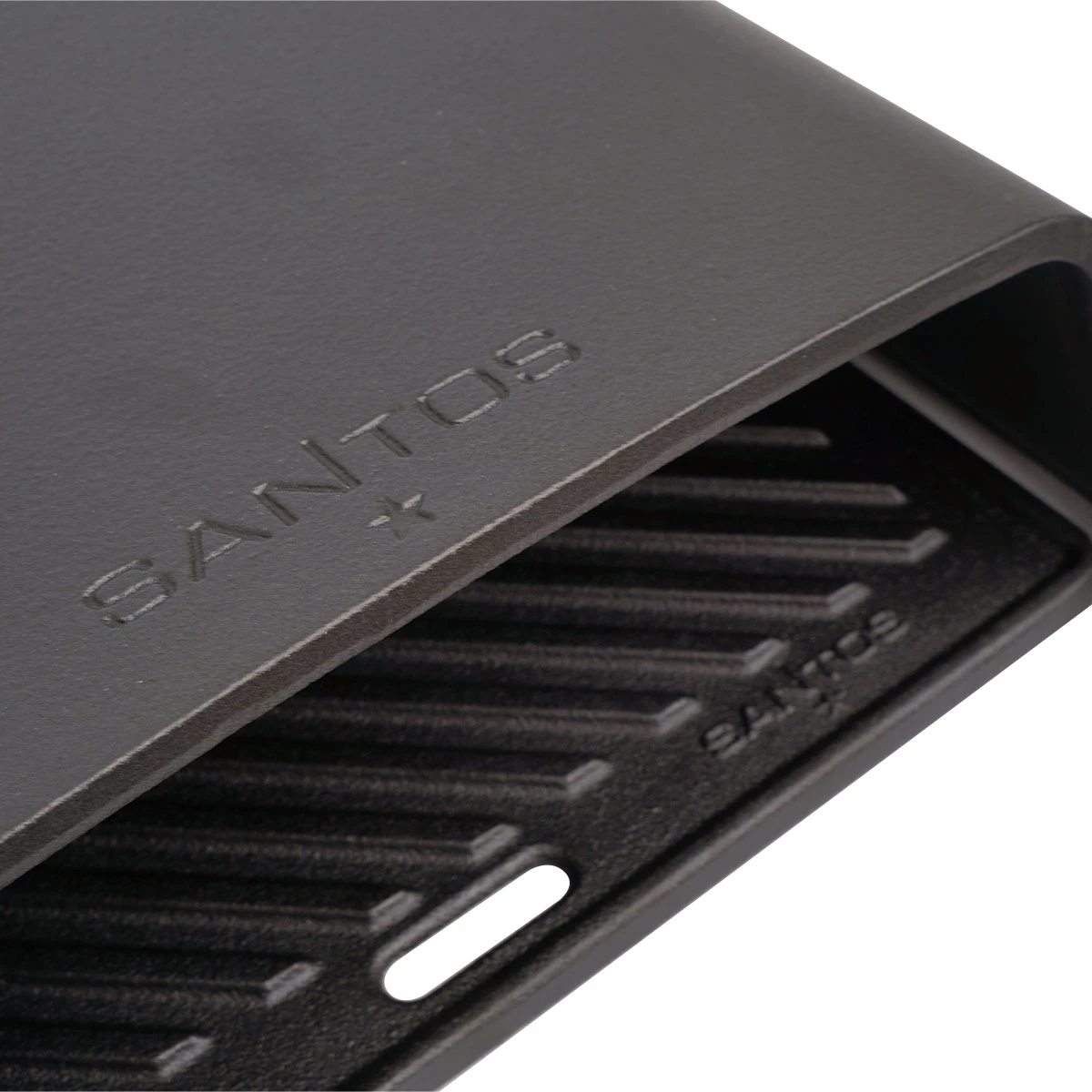 Die SANTOS Wende-Gussplatte lässt sich mit Hilfe des gusseisernen Türhebers ganz komfortabel aus- und einschieben – so habt Ihr Euer Grillgut blitzschnell kontrolliert, gewendet oder serviert.