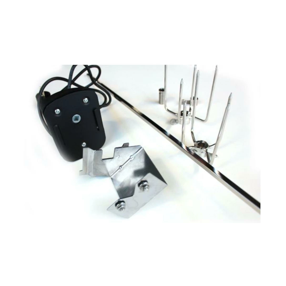 Um Euren Gasgrill in einen Rotisserie-Grill zu verwandeln, müsst ihr lediglich die Grill- und Warmhalteroste aus der Grillkammer entnehmen. Anschließend die Motorhalterung mit den beigelegten Schrauben Schrauben befestigen. Jetzt nur noch den Stecker einstecken und der Spieß kann losdrehen.