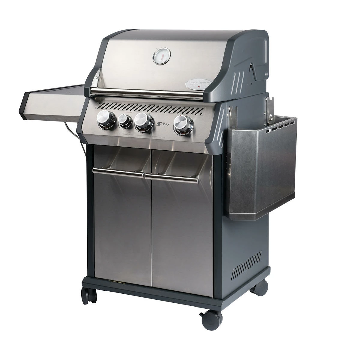 Kompetente Beratung und das richtige Gespür, was unsere Kunden wünschen, hat SANTOS zu einem der größten Grillfachhändler gemacht. Für unsere neuen Grillmodelle haben wir auf diese Erfahrungen zurückgegriffen. Der SANTOS S-301 Gasgrill in der Edelstahl Variante vereint alles, was das Herz von Grillfans höher schlagen lässt. Mit dem S-301 seid Ihr bestens für die nächsten Jahre ausgestattet. Neben der Hauptgrillfläche hat der S-301 einen Seitenkocher, der aus dem Gasgrill eine kompakte Outdoorküche macht.