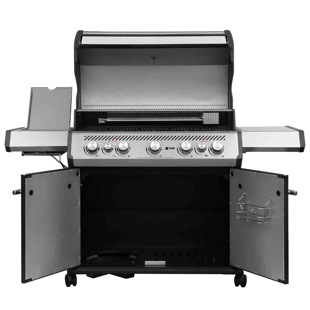Der große Bruder von unserem heißgeliebten S-418 punktet mit einem zusätzlichen Brenner inklusive mehr Platz auf dem Grillrost. Das bedeutet ein Plus an zuverlässiger Hitze, tollen Möglichkeiten und damit noch mehr Spaß am Grill. Bei ausgezogenem Warmhalterost erhaltet Ihr Eine enorme Gesamt-Grillfläche: Da ist Platz für Burger und Hähnchenschenkel auf dem gusseisernen Grillrost neben Grillgemüse im Grillkorb, Garnelen in der Einsatzpfanne oder knuspriger Flammkuchen vom Pizzastein, während oberhalb der Lachs indirekt brutzelt und frisches Brot warmgehalten wird. Auf dem 800 °C Infrarot Seitenbrenner gelingen perfekt gebratene Steaks wie nebenbei und der regelbare Edelstahl-Stab-Heckbrenner ermöglicht bei Einsatz eines Drehspießes einen XL-Sonntagsbraten mit wunderbar geschmackvoller Kruste. Die perfekte Außenküche, die keine Wünsche offen lässt!