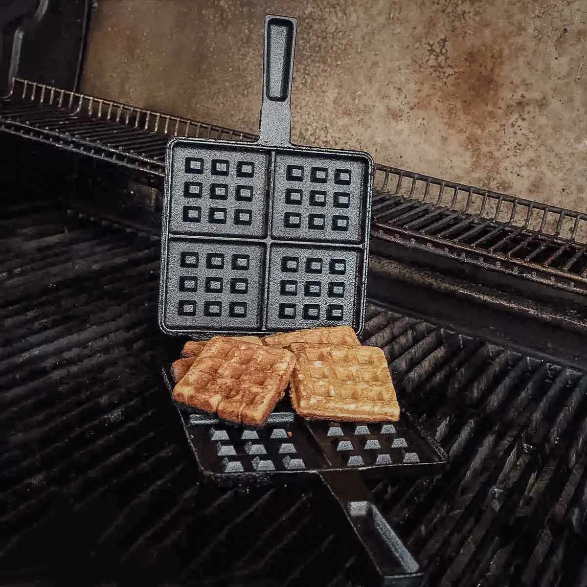 Desserts über offener Flamme zubereitet oder direkt vom Holzkohlegrill serviert gewinnen immer mehr an Beliebtheit. Mit dem neuen SANTOS Grillzubehör aus Gusseisen könnt Ihr Euer Repertoire an Desserts vom Grill nun um leckere Waffeln erweitern.
