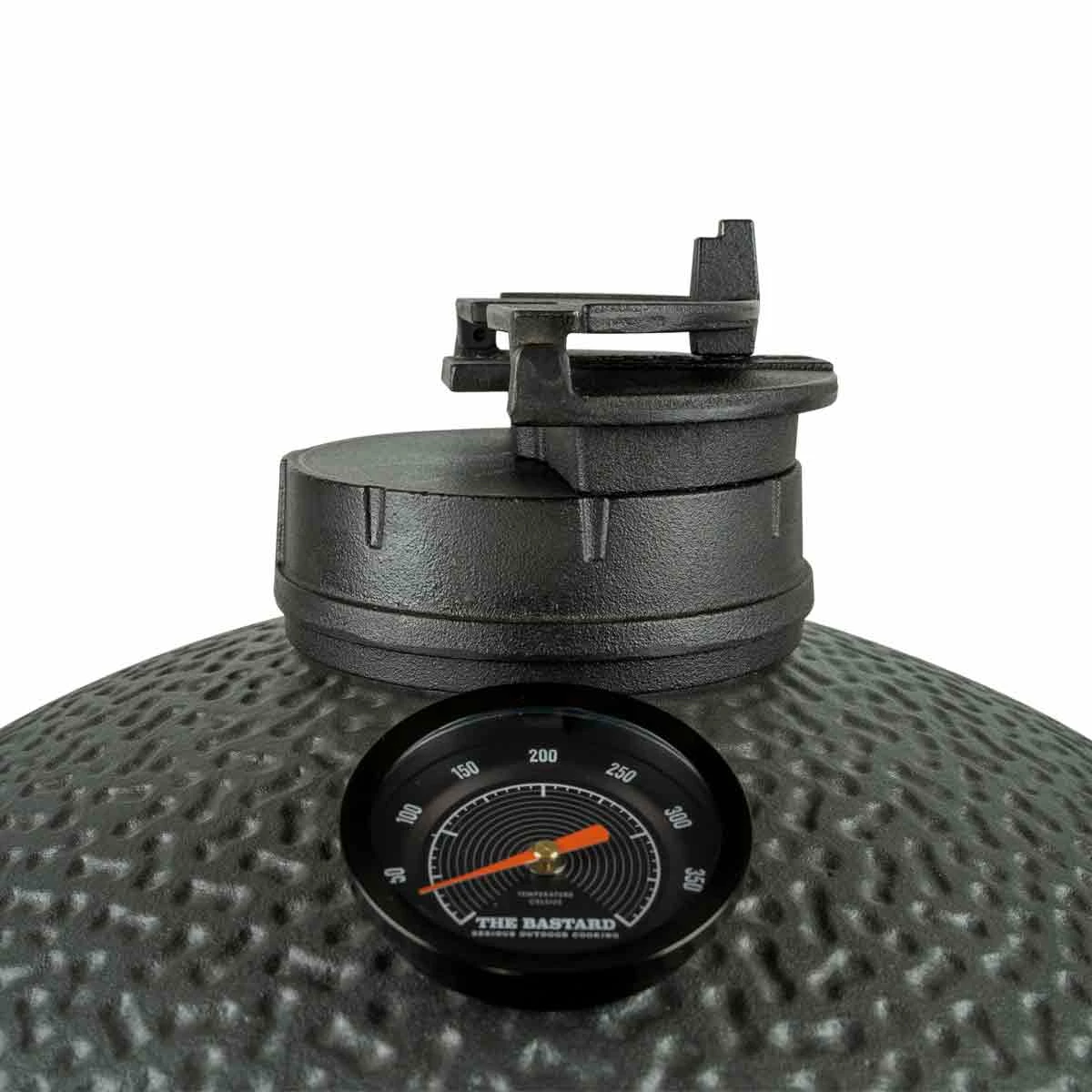 - Die sorgt für noch mehr Platz auf dem Grillrost: Der traditionell runde Kamado-Deckel lässt am Rand der Grillfläche wenig Platz nach oben. Beim The Bastard VX dagegen stößt dank der nichts an den Deckel – damit Ihr Euren Grillrost auch bis an den Rand grenzenlos belegen könnt.